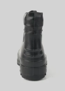 Collarboot PVC Gumboots are designed to offer exceptional protection and comfort in demanding work environments. Constructed with durable synthetic leather and a robust PVC outsole, these gumboots provide reliable safety and performance. The steel toe cap ensures crucial protection against impacts, while the heat, puncture, and oil-resistant properties make them suitable for various industries, including construction and fire safety.
